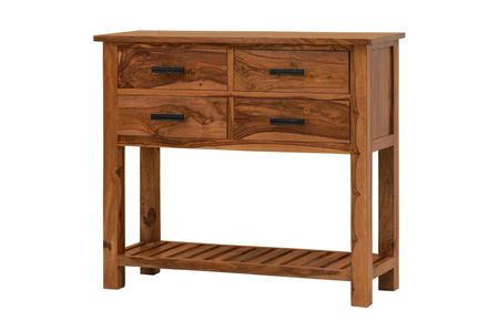 Apportez chaleur et élégance à votre intérieur avec cette superbe console en bois d’acacia massif. Son design met en valeur la richesse naturelle du bois, avec ses veines prononcées et ses nuances chaleureuses qui confèrent à chaque pièce un caractère unique. Dotée de quatre tiroirs pratiques, cette console offre un espace de rangement idéal pour organiser vos petits objets du quotidien tout en gardant votre espace bien ordonné. Son plateau spacieux est parfait pour mettre en valeur des objets décoratifs, une lampe ou un miroir, tandis que la tablette inférieure ajoute un espace supplémentaire pour le rangement ou la décoration. Sa structure robuste et son style épuré permettent à cette console de s’intégrer harmonieusement dans une entrée, un salon ou une salle à manger, apportant une touche naturelle et intemporelle à votre décor.Read More