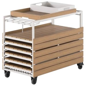 The Transformer Outdoor Bar Cart - Panel Storage is a versatile and functional addition to your outdoor entertaining space. This modern bar cart is designed to enhance your patio gatherings with ample storage and a sleek, stylish look. It includes a stemware rack, serving trays, and barware accessories, along with lockable wheels for easy mobility and security.Read More